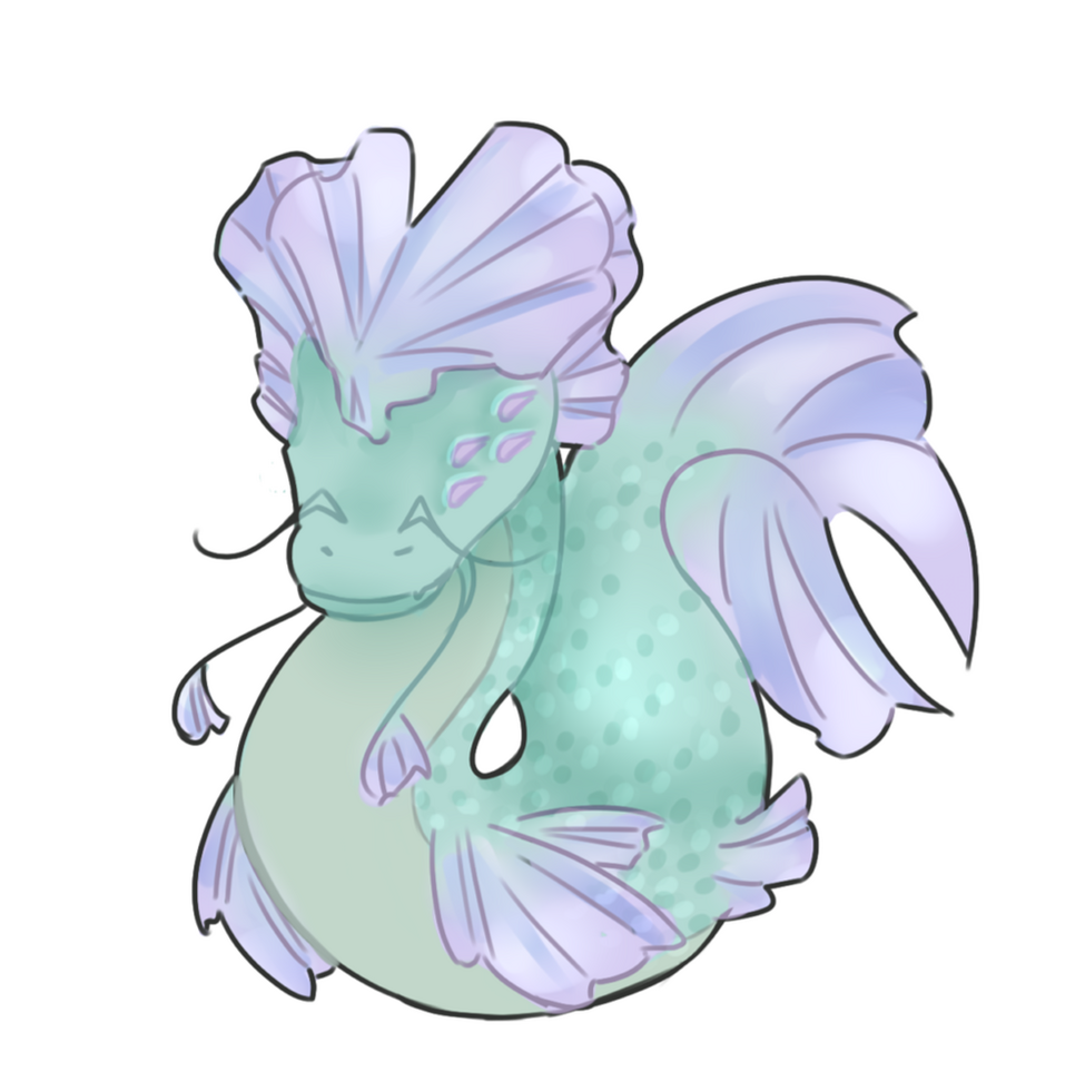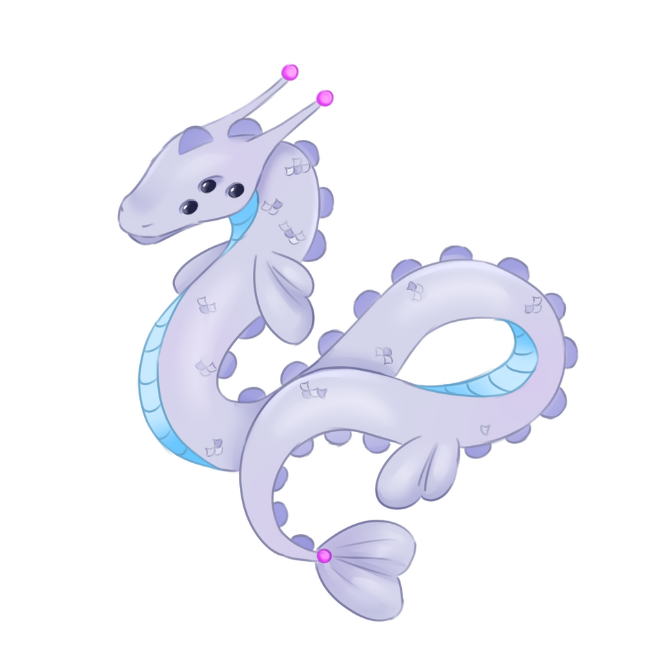 bow came last, still an egg carried on port's back when the leviathans found aqua. a late hatchling, small and soft compared to the rest. maybe that's why the crew dotes on her so much. she's playful, endlessly curious, and always underfoot. she's taken to living on deck, curled up in a mop bucket like it's her throne, pearls strung together by the crew like a crown atop her head. her older brothers and sister have made their home in the sea, but bow seems happiest surrounded by the crew.