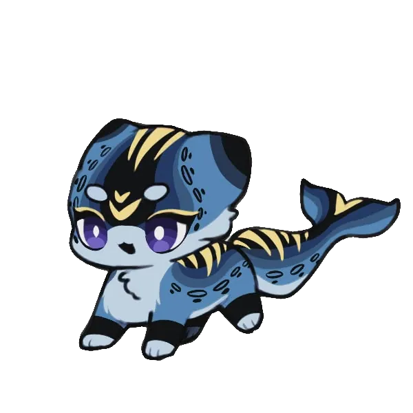 bow came last, still an egg carried on port's back when the leviathans found aqua. a late hatchling, small and soft compared to the rest. maybe that's why the crew dotes on her so much. she's playful, endlessly curious, and always underfoot. she's taken to living on deck, curled up in a mop bucket like it's her throne, pearls strung together by the crew like a crown atop her head. her older brothers and sister have made their home in the sea, but bow seems happiest surrounded by the crew.